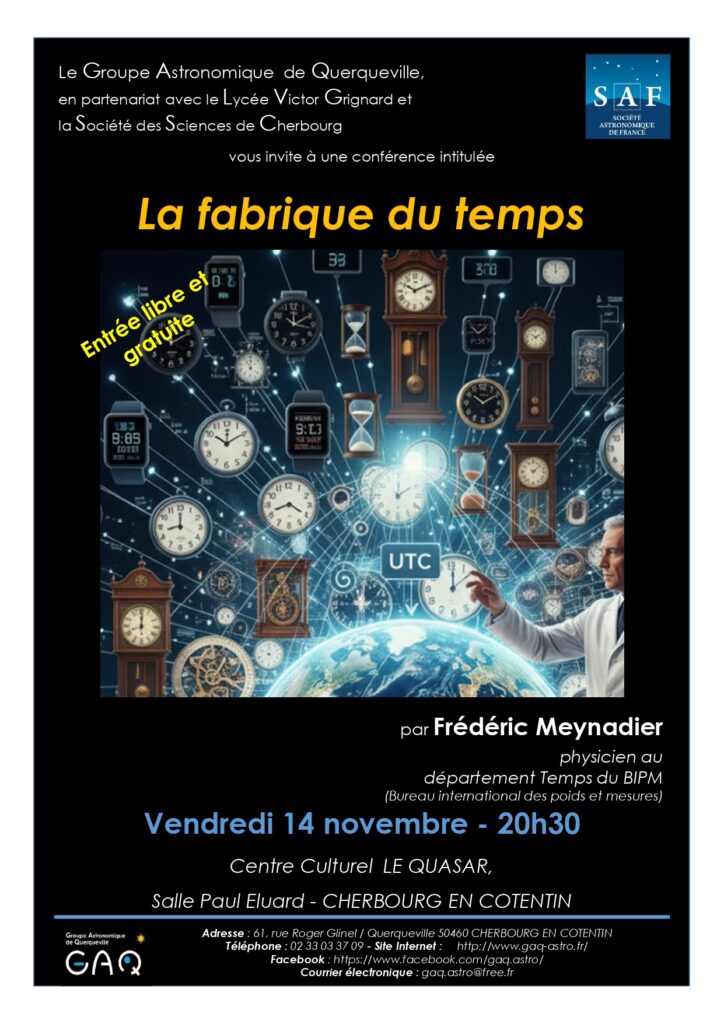 Vendredi 14 novembre : Conférence « La Fabrique du temps – Centre Culturel Le Quasar (Cherbourg)