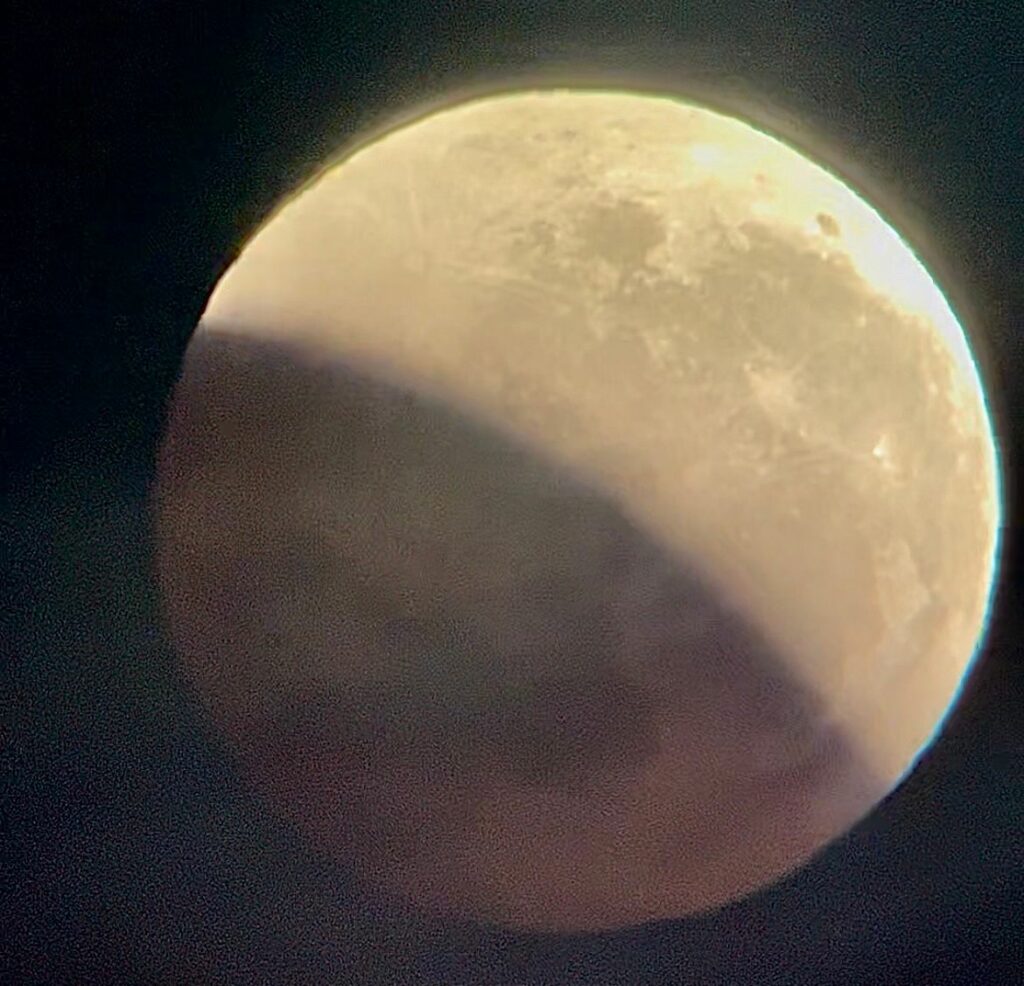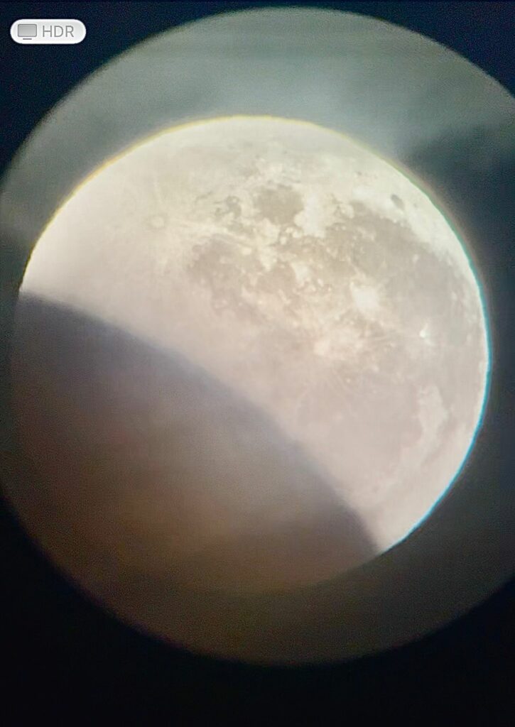 On commence par Noémie qui est quasiment la seule à bien avoir tiré son épingle du jeu lors de l’éclipse partielle de Lune du 9 septembre. Un belle bande nuage bloquait l’horizon Est où de levait la Lune éclipsée, mais elle su tirer avantage de sa position géographique. Les images sont réalisée avec un Iphone13, en digiscopie derrière un oculaire de 32 mm et une Barlow, monté sur une Newton 114/900 Mizar.