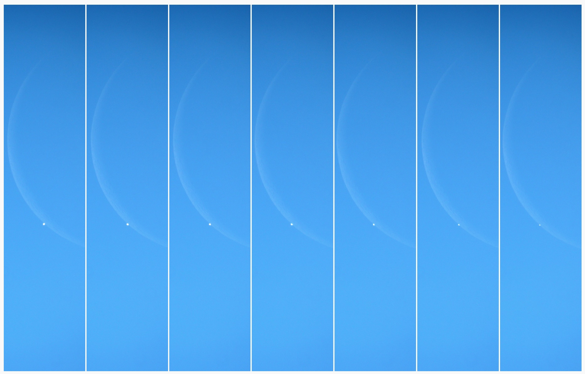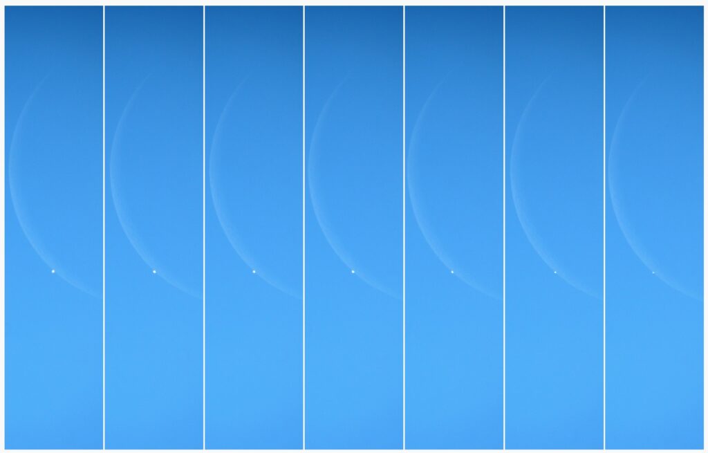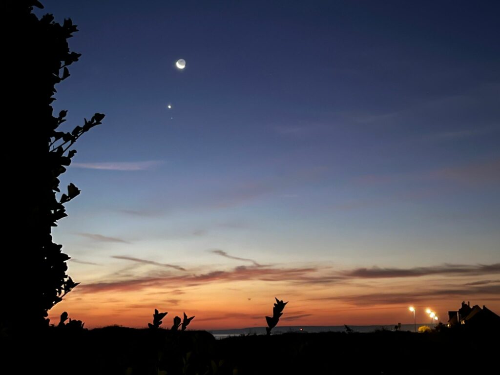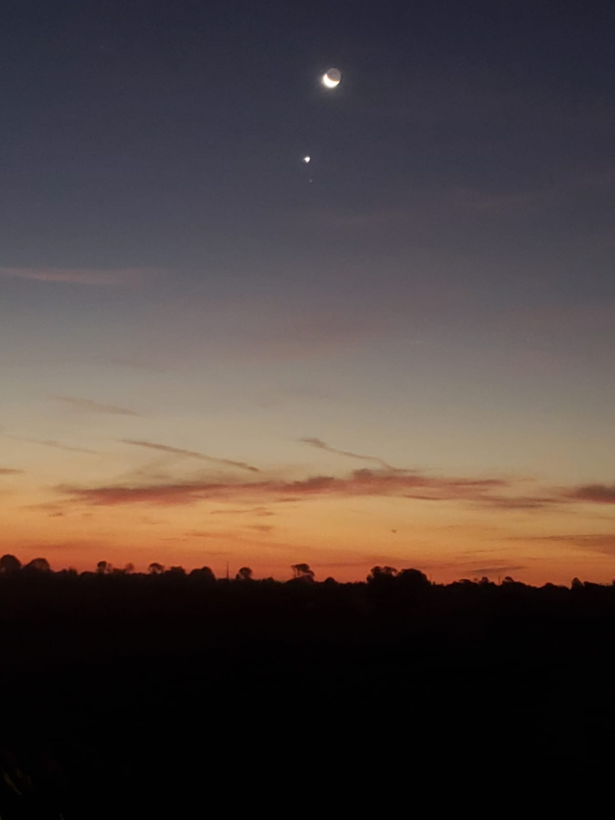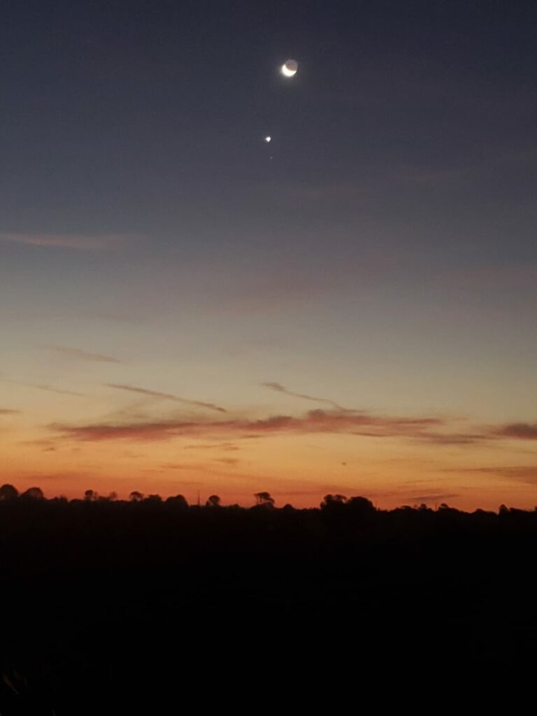 Le matin de l’évènement, le ciel de l’aube offrait un magnifique beau spectacle visuel qu’ont immortalisé Noémie et Frédéric avec leur smartphone : la conjonction entre le fin croissant de lune, Vénus, et l’étoile Régulus (juste en dessous de Vénus).