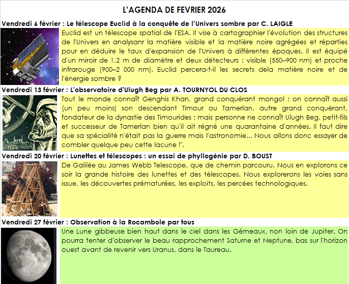Les réunions hebdomadaires du GAQ ont lieu à la Ferme de la Rocambole, au 61, rue Roger Glinel à Querqueville. Certaines d’entre elles se tiennent dans le local du télescope de 600 mm de Ludiver. Vous pouvez aussi assister à nos réunions en distanciel : les membres reçoivent un lien de connexion Zoom via la liste de diffusion GAQ-Membres ; les nouveaux venus peuvent demander ce lien en envoyant un mail à gaq.astro@free.fr. Les réunions consacrées à l’observation ne sont pas accessibles en distanciel.